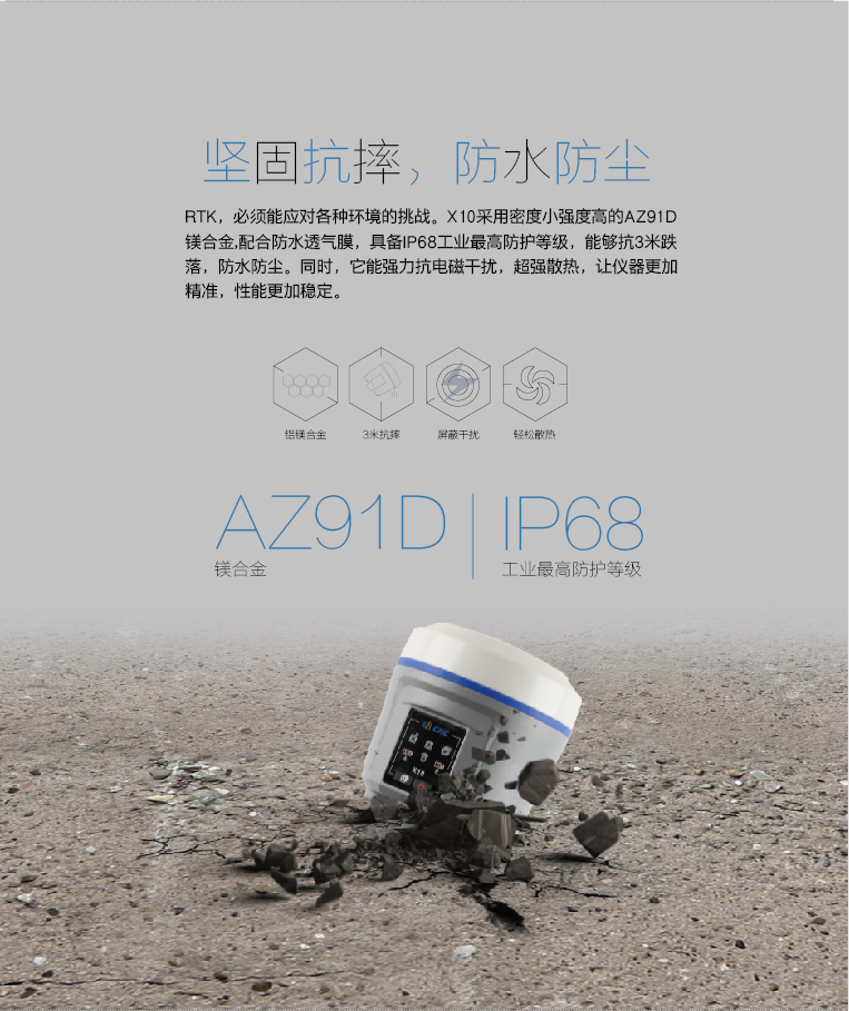 華測X10 智能RTK,是RTK領域內的一次大膽的進化。它精致小巧但大有可為,快速精準的測量,堅固抗摔的材質,持久耐用的續航,和智能強悍的配置,為用戶帶來全新的測量體驗。